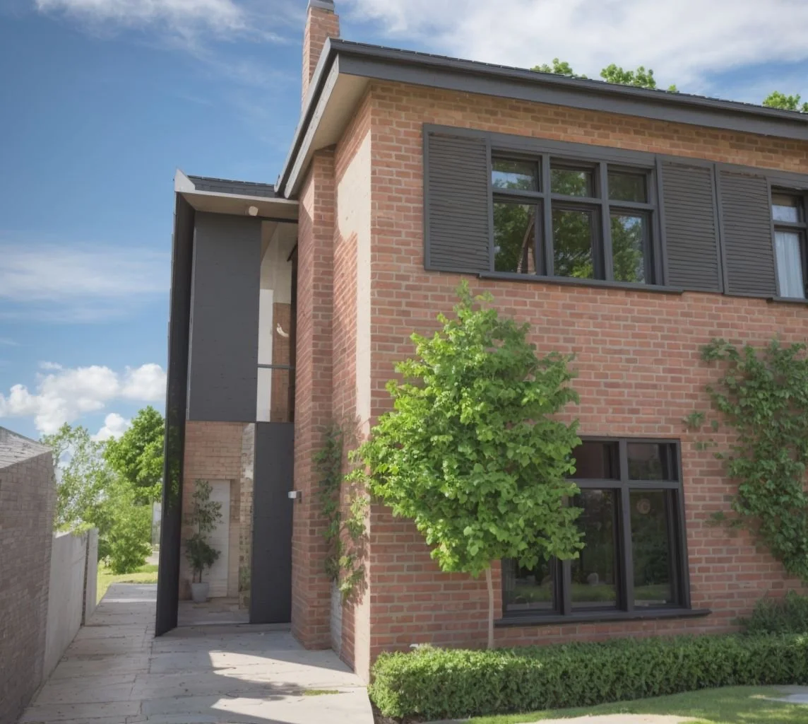 Externally, the home’s curved masonry forms wrap around intimate garden courtyards and transition into a bold rear elevation that opens to sweeping views of the valley. The material palette of textured brickwork, raw concrete, and blackened steel lends both durability and elegance, while a cantilevered balcony and full-height sliding doors promote seamless indoor-outdoor living. Every element has been designed with attention to proportion, light, and flow, resulting in a residence that is at once sculptural and serene—tailored to its site and deeply attuned to the lifestyle of its inhabitants.